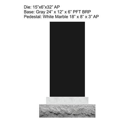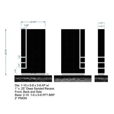 Unique monument seat and vase design. Specifically for a single grave space. Can be upgraded into a larger monument for a double or family plot.
