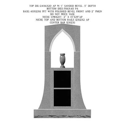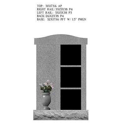 A triple cremation repository design for a private cremation mausoleum with a vase design. Specifically curated for use on a single grave space.Choose Gray or Shell Pink with black shutters.